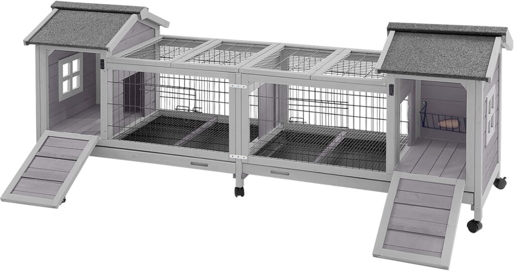 If you have the floor space, this 80-inch long hutch is the gold standard for indoor living. It’s designed to give your rabbit enough room to actually hop, not just sit.